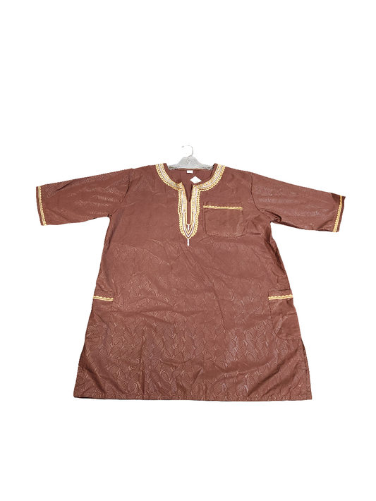Brown, Gold-Lined Men's African Set, Shirt and Matching Pants. *Bonus Matching African Cap!*