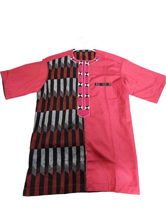 Men's Red African Short Sleeve Patterned Set: Shirt and Pants